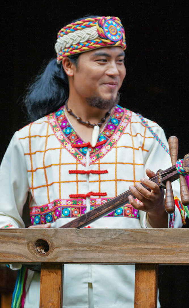 云南壯族主要聚居在文山州,人口114萬,民間的村寨大多依山傍水。壯族擅長種植水稻,有太陽崇拜和長老崇拜的風俗,視銅鼓為重器,厚愛銀飾,善烹制五色花米飯,能歌善舞,熱情好客。進入景區(qū)壯族村,迎面有祭祀龍王的龍柱,兩邊是先民繪制的天王崖畫和為紀念傳說洪水泛濫時幫助先民度過劫難而建的石葫蘆亭。祭祀玉皇大帝的昊天閣和傳說能驅(qū)邪納福的碩大銅鼓聳立在廣場兩側(cè)。桿欄式和麻欄式民居、壯族青年社交休憩的“情廊”、村...